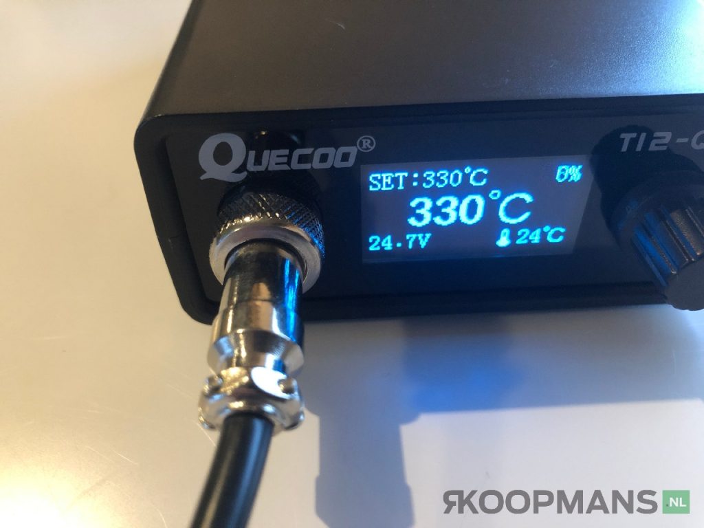 Wanneer ik alles aangesloten heb en de schakelaar van het station op aan zet licht het display op en begint de bout gelijk te op warmen.